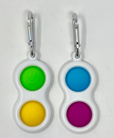We include 1 each of a Blue/Purple and Green/Yellow Two-Finger Bubble Dots Toy that fits right in your pocket so they're completely portable. The clip can also be attached to a variety of bags, lanyards, dog leashes or even your belt loop. Children and adults alike can enjoy the safe and stress-free enjoyment that our fidget toys provide.