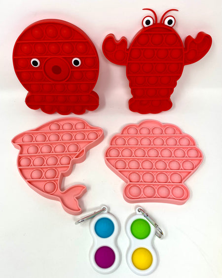 Fidget Silicone Sensory Toy Sea Creature Shapes Multi-Pack (Octopus, Dolphin, Lobster and Shell)