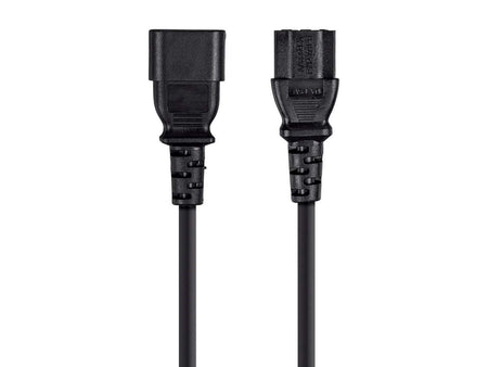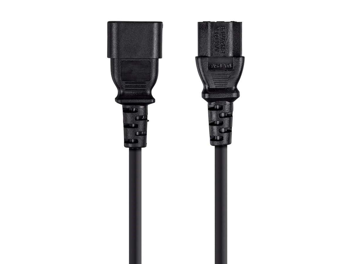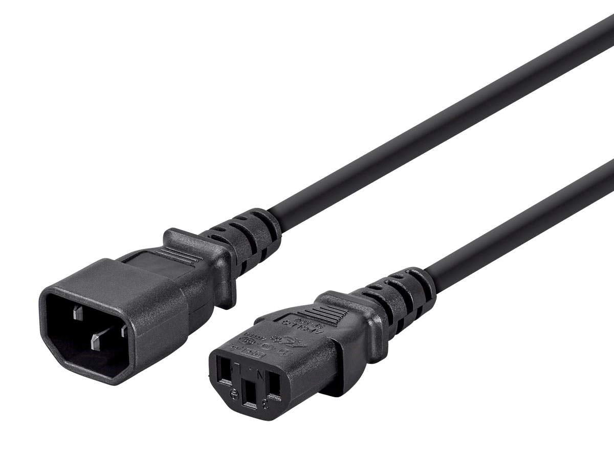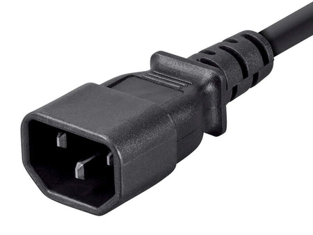 Details: Save an AC power outlet by connecting your computer monitor to the computer power supply or extend a cable with an IEC 60320 C13 connector on one end. This cable features a female IEC 60320 C13 connector on one end and a male IEC 60320 C14 plug on the other end. Simply mate the male C14 connector to another cable with a female C13 connector. Alternatively, mate the male C14 connector to the C13 panel connector on a computer power supply then mate the female C13 connector to a male C14 connector on a monitor or monitor AC power adapter.