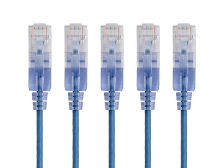 Monoprice - 129425 SlimRun Cat6A Ethernet Patch Cable - Snagless RJ45 UTP Pure Bare Copper Wire 10G 30AWG 2ft Blue 5-Pack