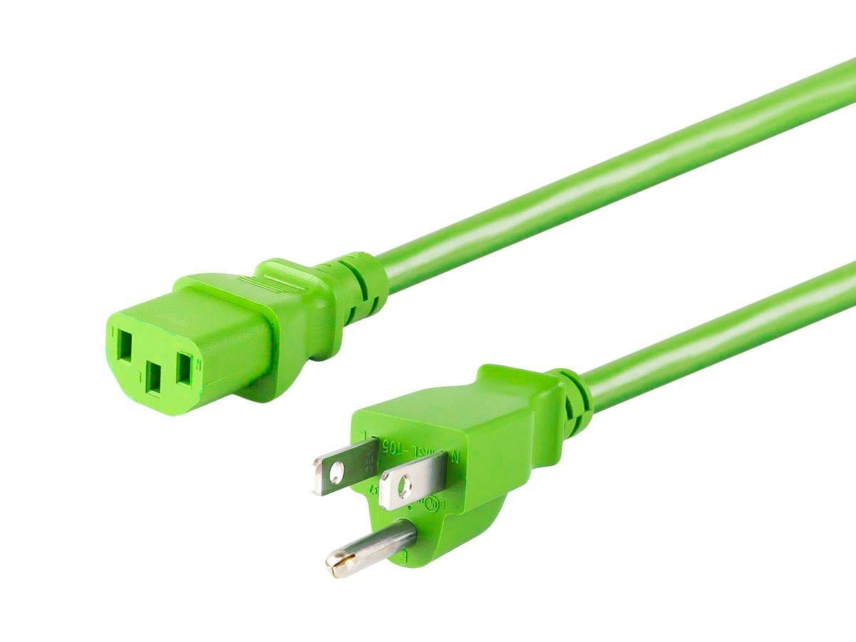 Monoprice 133606 18AWG Power Cable/Cord - 10ft - Green 3 Conductor PC Power Connector Socket 10A (NEMA 5-15P to IEC 60320 C13)