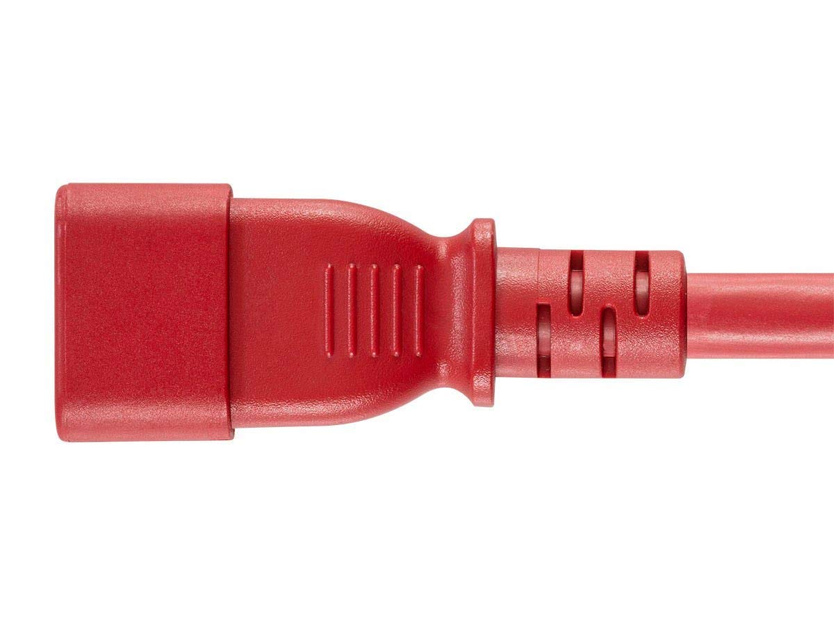 Details: IEC 60320 C14 to IEC 60320 C19 power cords are commonly used between Cisco or Juniper Networks rack mounted equipment and the PDU in a data cabinet. Extend the reach of your AC powered device using this AC power extension cord to energize equipment from a distant power outlet. This cable features a standard, grounded IEC 60320 C14 plug on one end and an IEC 60320 C19 receptacle on the other.