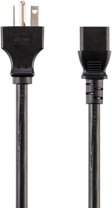 Connect your computer, monitor, power adapter, or other device with a male IEC 60320 C14 panel connector to a UPS or other AC power source. This power cord features a standard, grounded NEMA 6-20P plug on one end and an IEC 60320 C13 connector on the other end. Simply mate the female C13 connector with the male C14 connector on your device or power adapter, then plug the NEMA connector into a nearby AC power outlet, UPS, or other AC power source. This cable is designed to carry a 15 amp/1875 watt, 125 volt load.