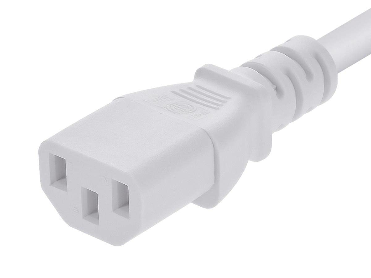 Monoprice Power Cord - 10 Feet - White | NEMA 5-15P to IEC 60320 C13, 18AWG, 10A, 125V, 3-Prong, for PC, AC Adapter, Laptop, Monitor, Projector