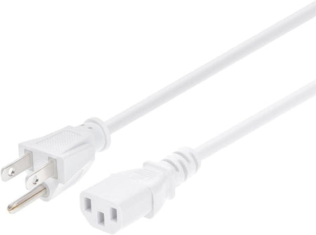 Monoprice Power Cord - 6 Feet - White | NEMA 5-15P to IEC 60320 C13, 18AWG, 10A, 125V, 3-Prong, for PC, AC Adapter, Laptop, Monitor, Projector