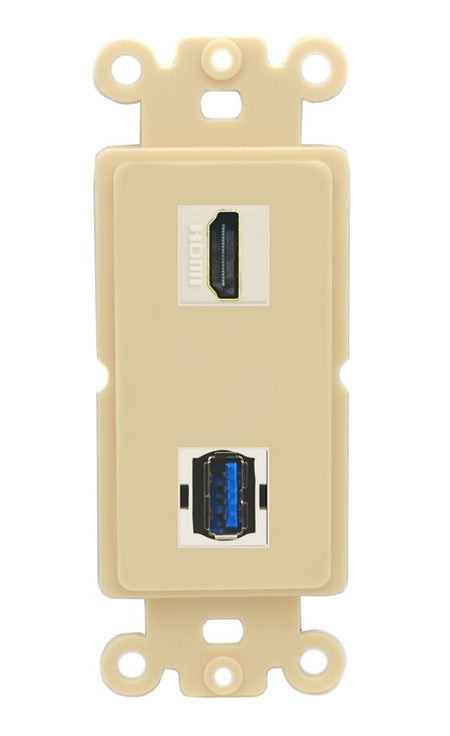 Increase quantity for RiteAV - HDMI USB 3.0 A-A Port Wall Plate Decorative (Insert) - Rocker [Ivory/Ivory]