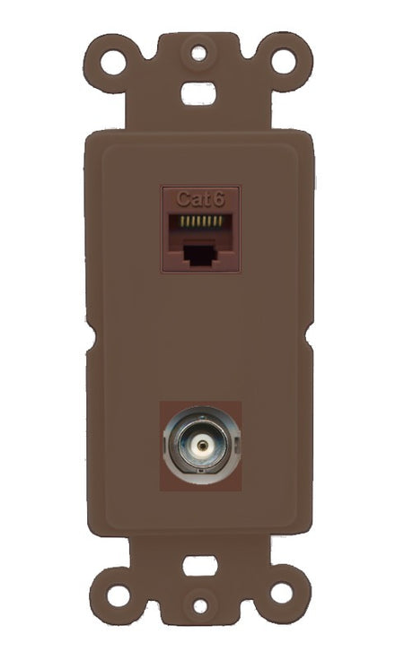 Increase quantity for RiteAV - Cat6 Ethernet BNC Port Wall Plate Decorative (Insert) - Rocker [Brown/Brown]