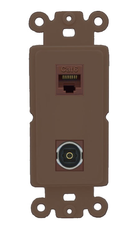 RiteAV - Cat6 Toslink Port Wall Plate Decorative (Insert) - Rocker [Brown/Brown]