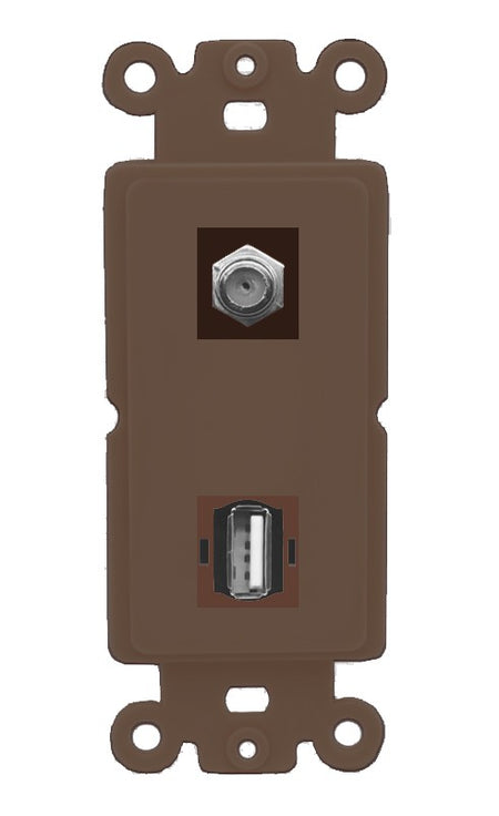 Increase quantity for RiteAV - Coax USB 2.0 A-A Port Wall Plate Decorative (Insert) - Rocker [Brown/Brown]