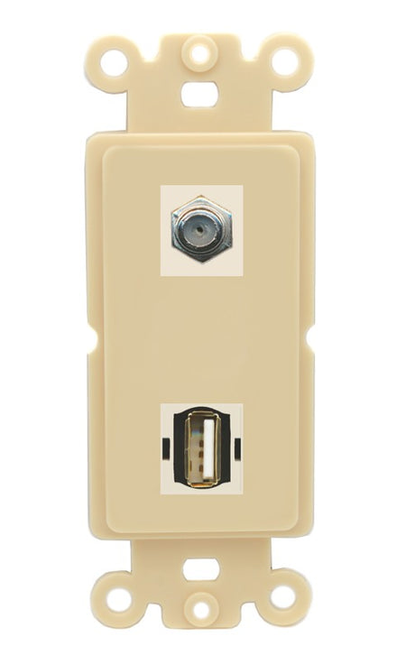 Increase quantity for RiteAV - Coax USB 2.0 A-A Port Wall Plate Decorative (Insert) - Rocker [Ivory/Ivory]