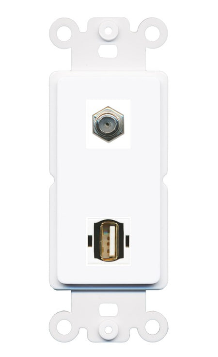 Increase quantity for RiteAV - Coax USB 2.0 A-A Port Wall Plate Decorative (Insert) - Rocker [White]