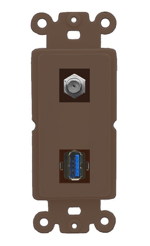 Increase quantity for RiteAV - Coax USB 3.0 A_A Port Wall Plate Decorative (Insert) - Rocker [Brown/Brown]