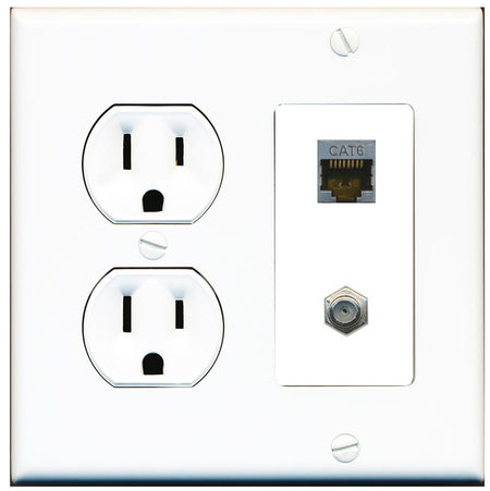15 Amp Round Power Outlet 1 Port Cat6 Shielded 1 Coax Cable TV F-Type Wall Plate - Round Outlet [White]