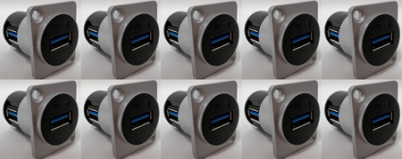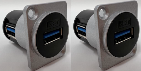 This particular D Series Coupler has silver metal housing (alternate colors are available) and an accepts a USB 3.0 A-type Male Terminated Cable on the front and back side of the coupler. Note that on the backside of the plate, a USB A Male Cable would exit up/down as to not interfere with other connections. We also offer a model in which the cable would exit straight out of the backside of the plate, if depth is not a concern. The USB 3.0 A-type Female Coupler supports data transfer speeds up to 5 Gbps is backwards compatible to USB 2.0. (Note that if a USB 2.0 Cable is used, the transfer rate will be limited to USB 2.0 speed.)Â