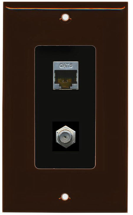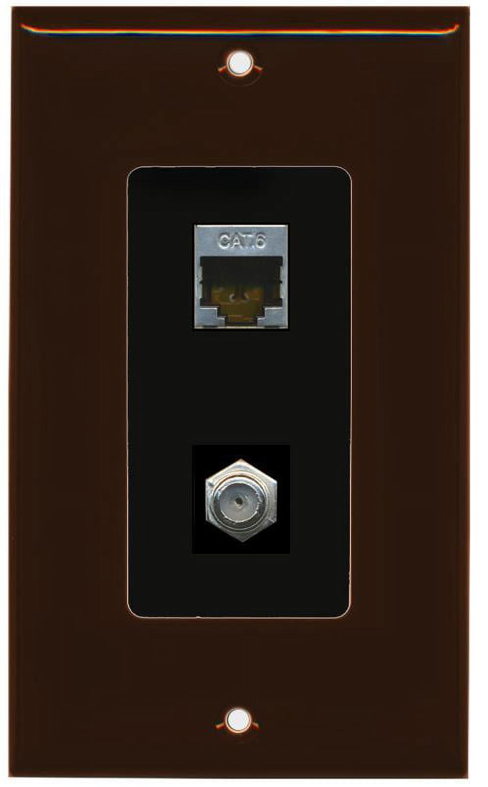 RiteAV Decorative 1 Gang Wall Plate (Brown/Black) 2 Port - Cat6 (Shielded) Coax (Black) - Bracket Included