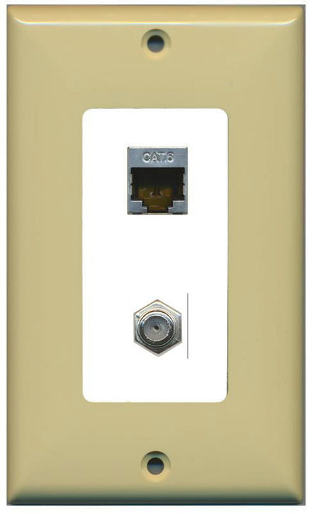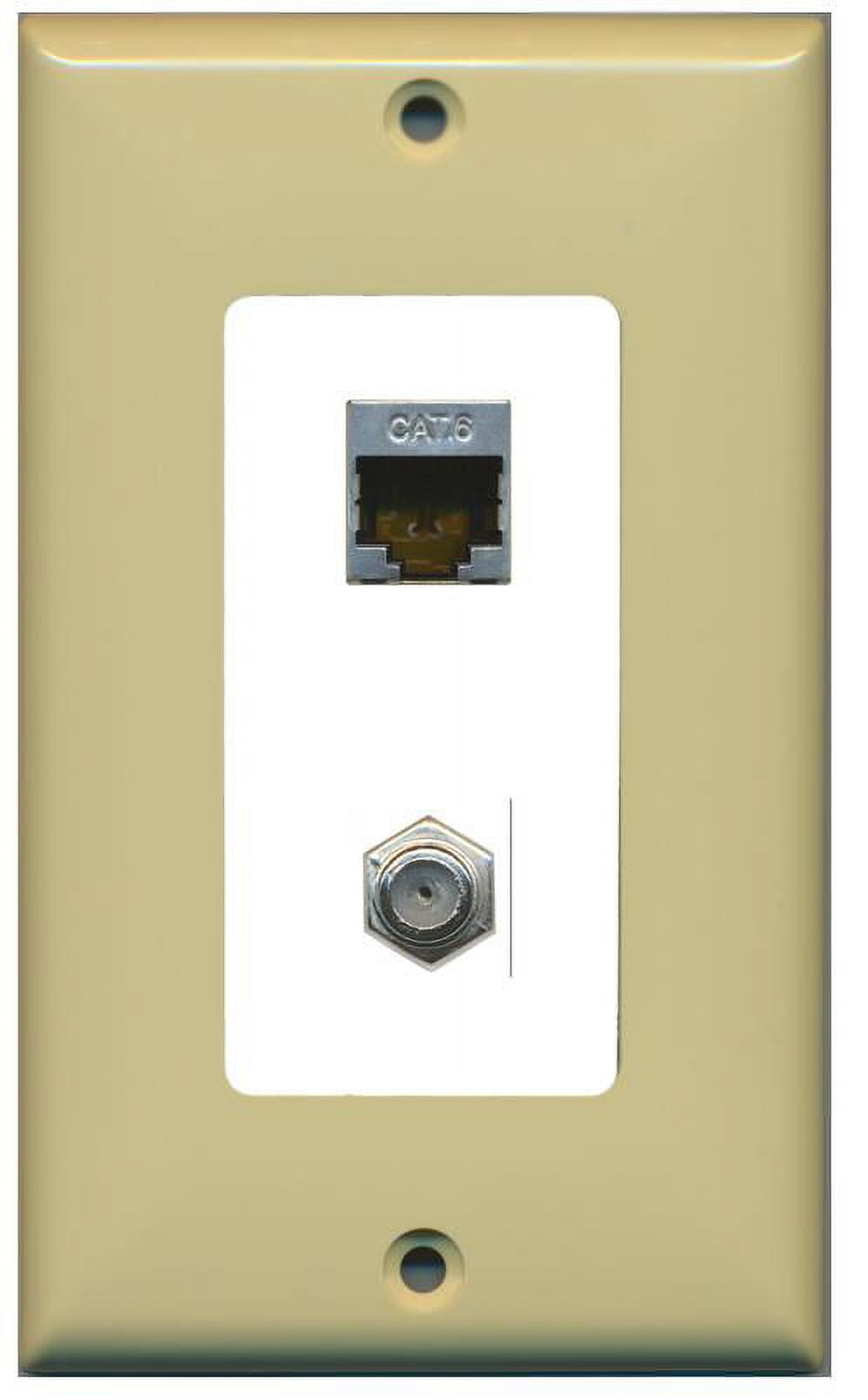 RiteAV Decorative 1 Gang Wall Plate (Ivory/White) 2 Port - Cat6 (Shielded) Coax (White) - Bracket Included
