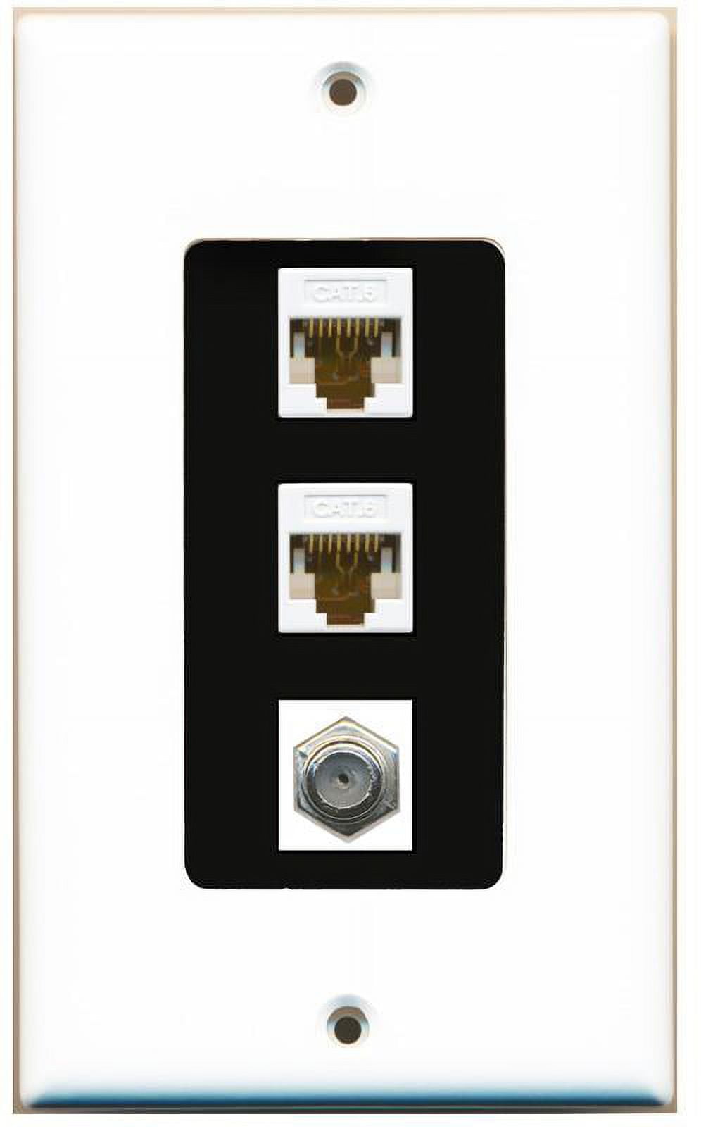 RiteAV Decorative 1 Gang Wall Plate (White/Black) 3 Port - 2 x Cat6, 1 x Coax