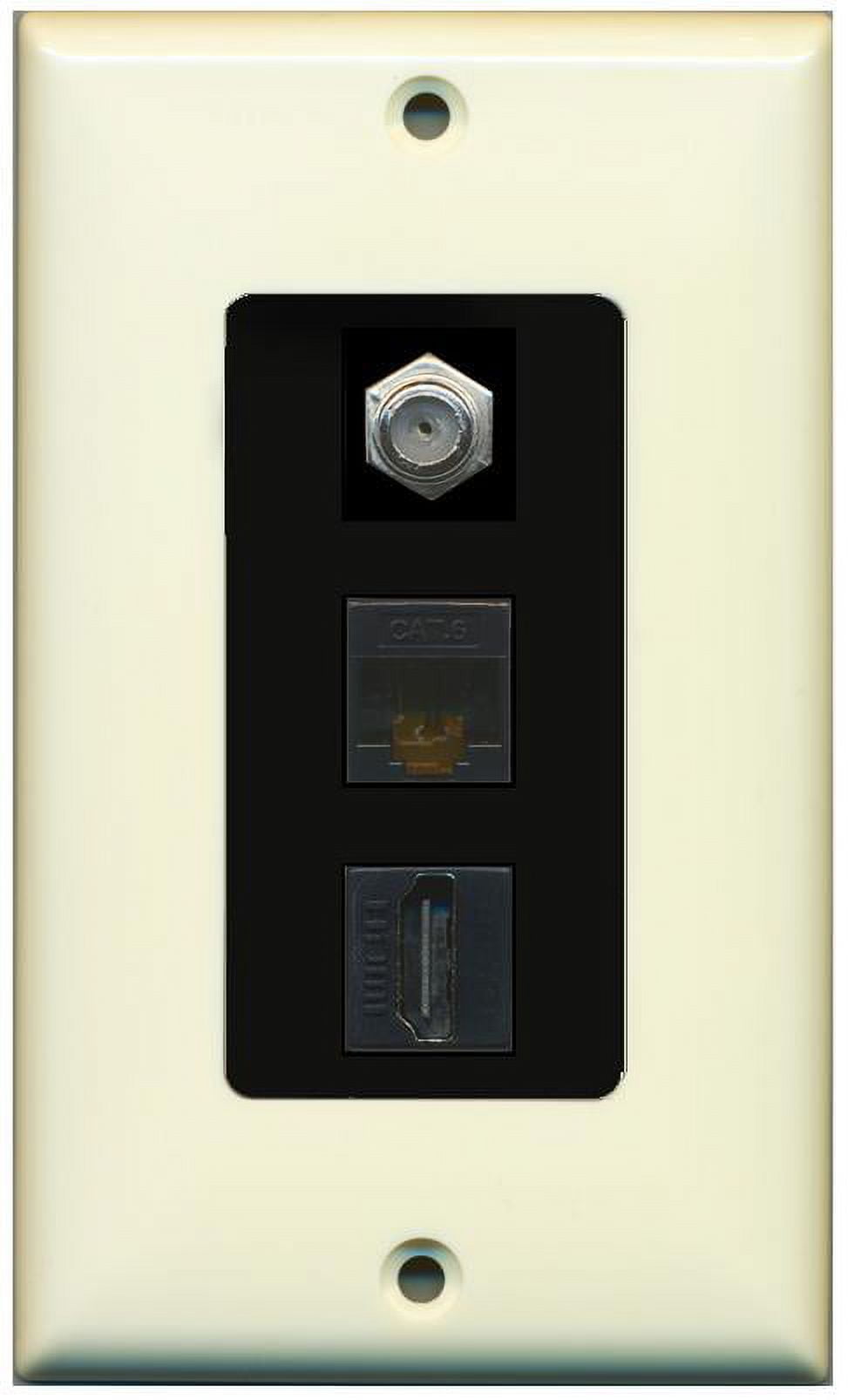 RiteAV Decorative 1 Gang Wall Plate (Light Almond/Black) 3 Port - Coax (Black) Cat6 (Black) HDMI (Black)