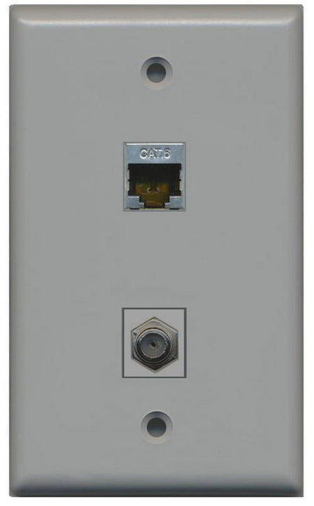 RiteAV 1 Port Cat6 Shielded 1 Coax Wall Plate Flat Gray