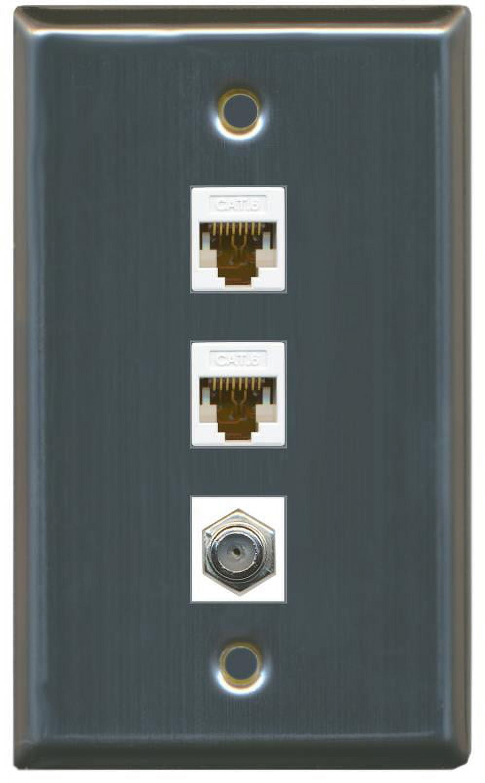 RiteAV 1 Gang Wall Plate (Stainless Steel) 3 Port - 2 x Cat6, 1 x Coax