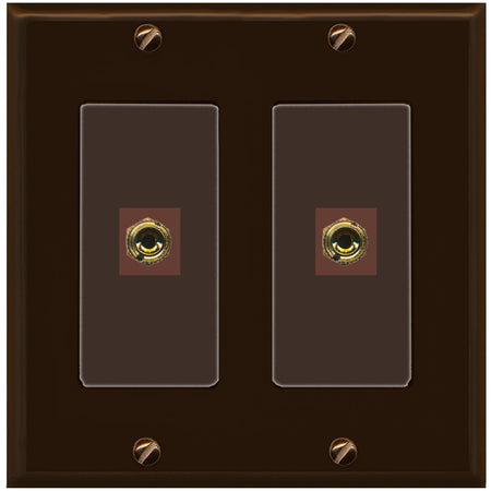 RiteAV 2 Banana 1 Speaker Surround Female Coupler Binding Post Wall Plate - 2 Gang [Brown/Brown]