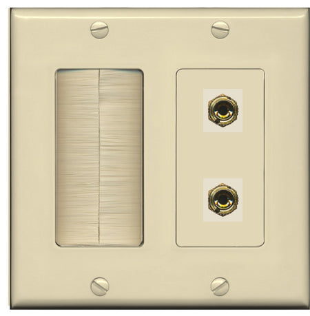 RiteAV 2 Banana 1 Speaker Surround Female Coupler Binding Post Wall Plate - Brush [Ivory/Ivory]