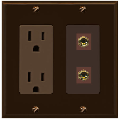 RiteAV 2 Banana 1 Speaker Surround Female Coupler Binding Post Wall Plate - Outlet [Brown/Brown]