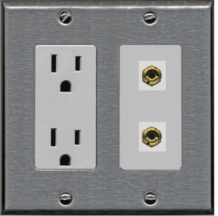 RiteAV 2 Banana 1 Speaker Surround Female Coupler Binding Post Wall Plate - Outlet [Stainless/Gray]