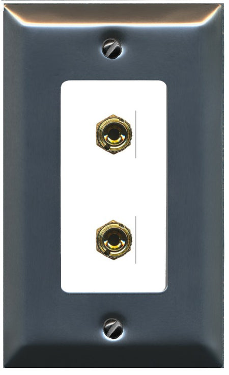 RiteAV 2 Banana 1 Speaker Surround Female Coupler Binding Post Wall Plate - 1 Gang Decorative [Stainless/White]