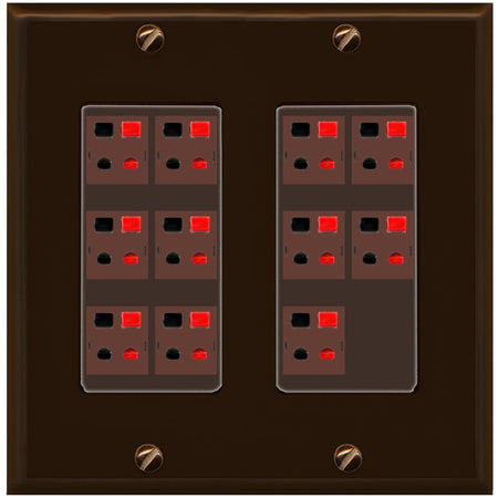 RiteAV 11.0 Surround Sound Speaker Wire Wall Plate Female Connectors - 2 Gang [Brown/Brown]