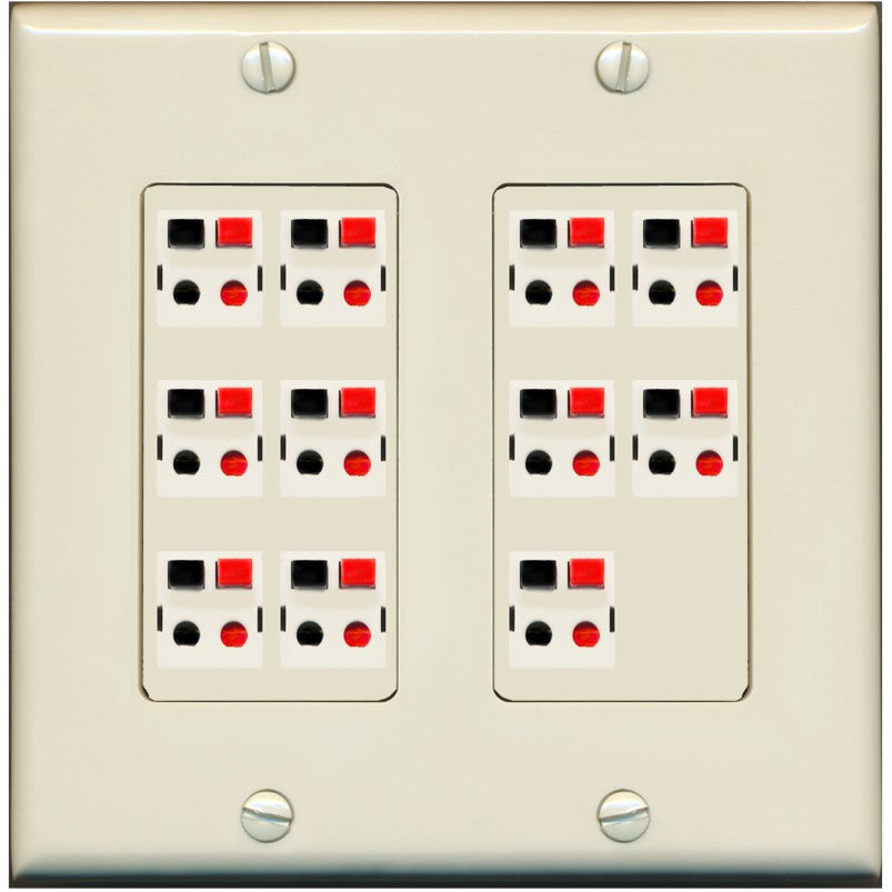 RiteAV 11.0 Surround Sound Speaker Wire Wall Plate Female Connectors - 2 Gang [Light-Almond]
