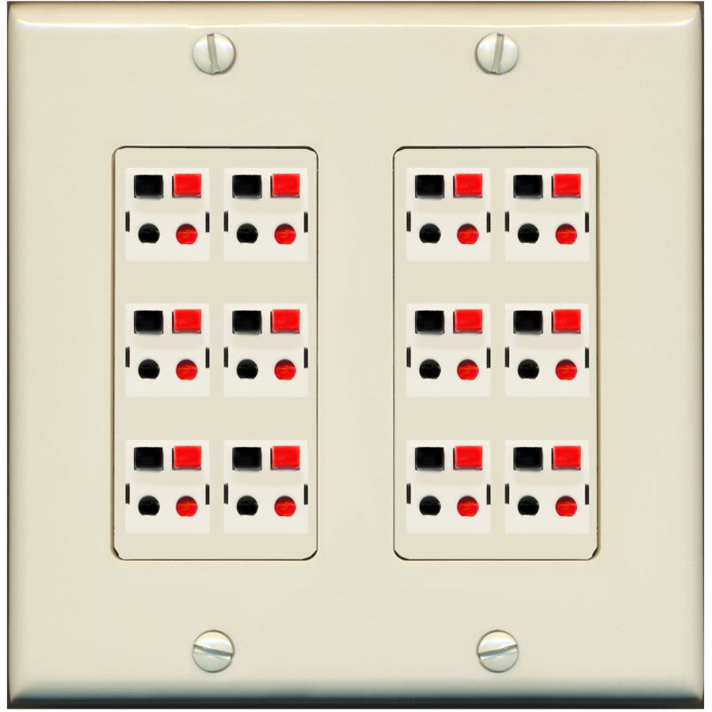 RiteAV 12.0 Surround Sound Speaker Cable Terminal Wire Wall Plate for Home Theater - 2 Gang [Light-Almond]