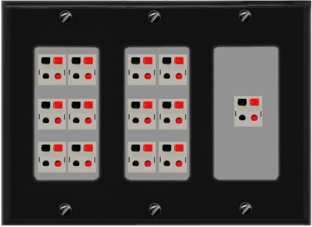 RiteAV 13.0 Surround Sound 13 Speaker Cable Terminal Wire Wall Plate for Home Theater - 3 Gang [Black/Gray]