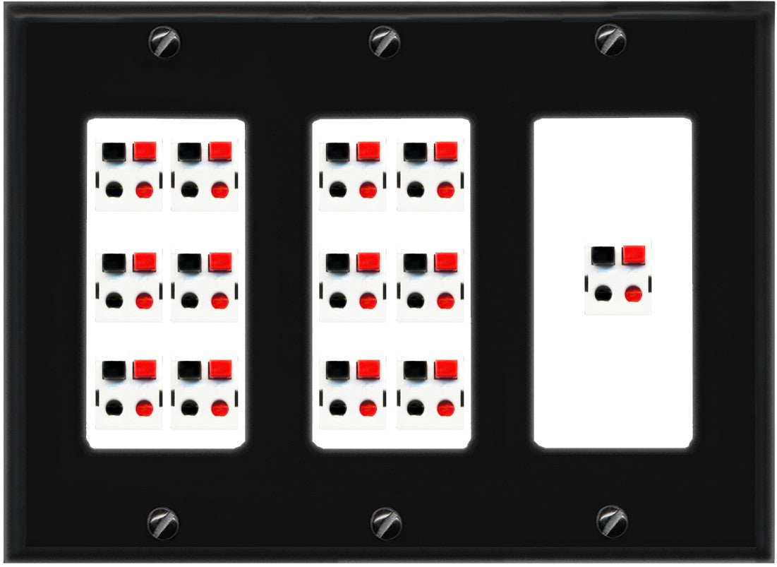 RiteAV 13.0 Surround Sound 13 Speaker Cable Terminal Wire Wall Plate for Home Theater - 3 Gang [Black/White]