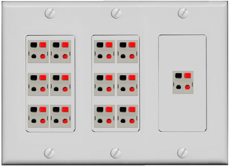 RiteAV 13.0 Surround Sound 13 Speaker Cable Terminal Wire Wall Plate for Home Theater - 3 Gang [Gray]