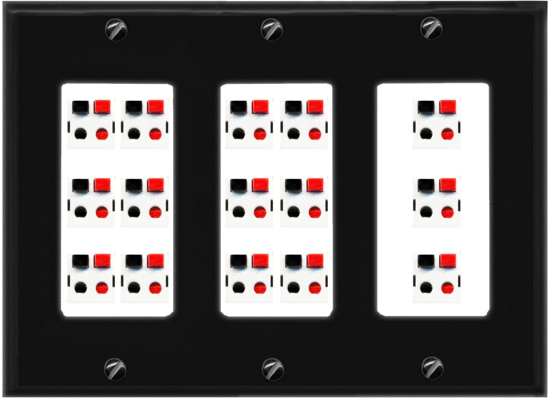 RiteAV 15.0 Surround Sound 15 Speaker Cable Terminal Wire Wall Plate for Home Theater - 3 Gang [Black/White]
