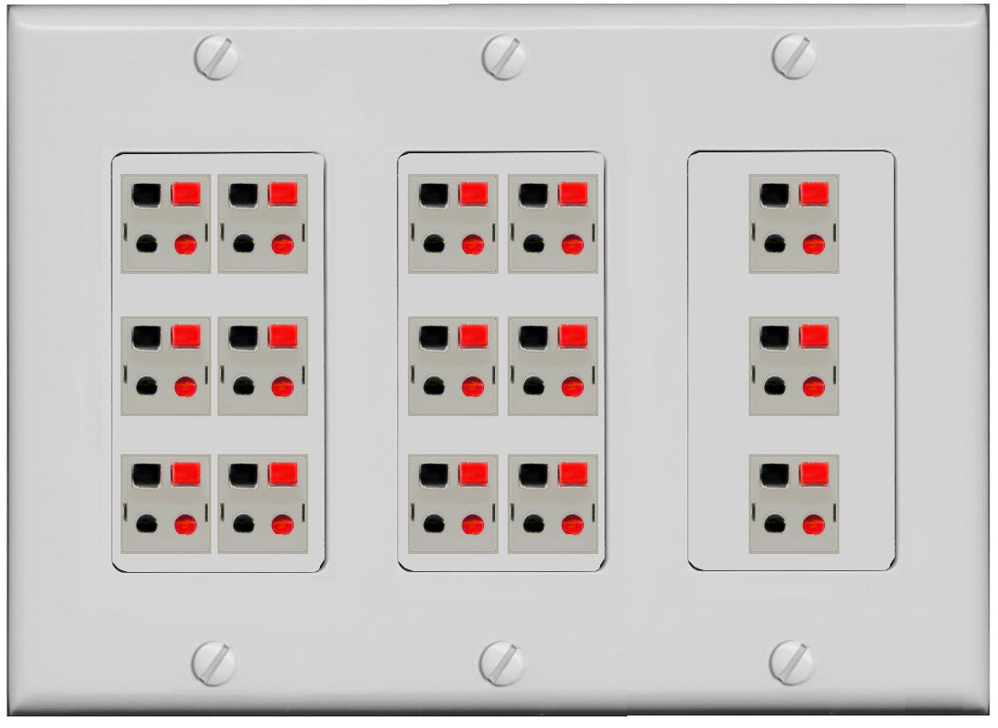 RiteAV 15.0 Surround Sound 15 Speaker Cable Terminal Wire Wall Plate for Home Theater - 3 Gang [Gray]