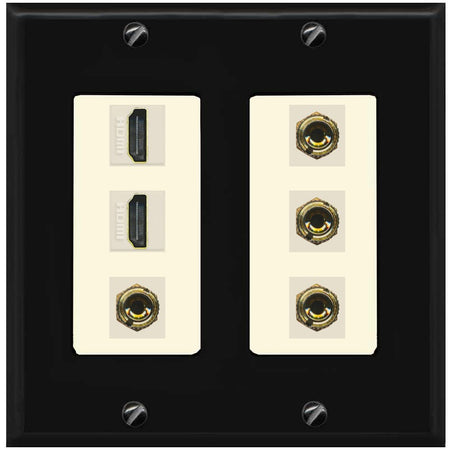 Increase quantity for RiteAV 2 Speaker 4 Banana Binding Post Wall Plate with 2 HDMI Jacks - 2 Gang [Black/Light-Almond]