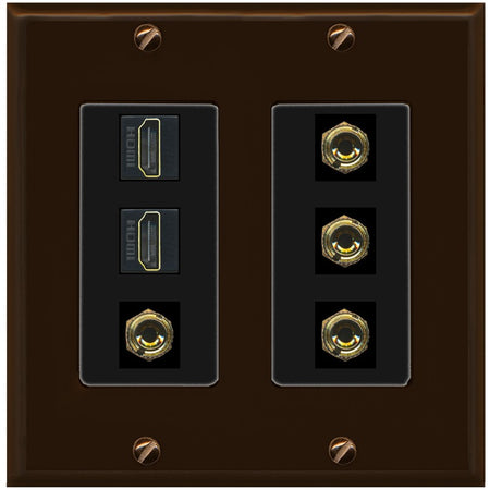 Increase quantity for RiteAV 2 Speaker 4 Banana Binding Post Wall Plate with 2 HDMI Jacks - 2 Gang [Brown/Black]