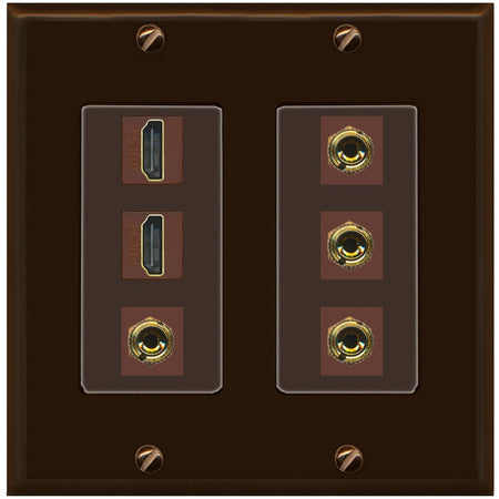 Increase quantity for RiteAV 2 Speaker 4 Banana Binding Post Wall Plate with 2 HDMI Jacks - 2 Gang [Brown/Brown]