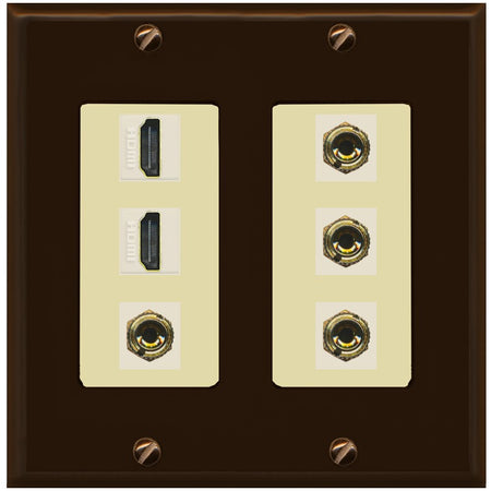 Increase quantity for RiteAV 2 Speaker 4 Banana Binding Post Wall Plate with 2 HDMI Jacks - 2 Gang [Brown/Ivory]