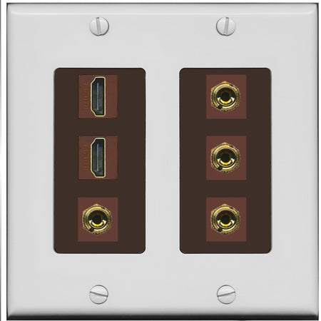 Increase quantity for RiteAV 2 Speaker 4 Banana Binding Post Wall Plate with 2 HDMI Jacks - 2 Gang [Gray/Brown]