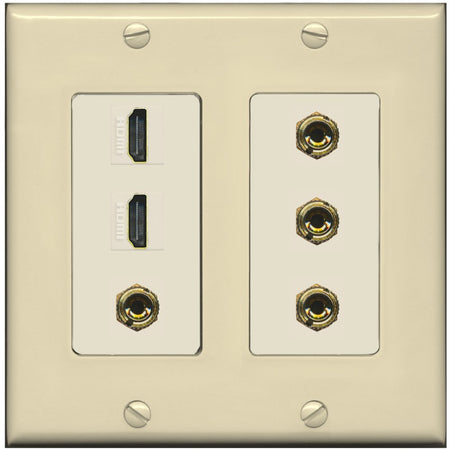 Decrease quantity for RiteAV 2 Speaker 4 Banana Binding Post Wall Plate with 2 HDMI Jacks - 2 Gang [Ivory/Light-Almond]