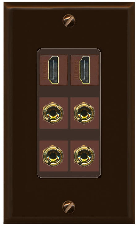 RiteAV 2 Speaker 4 Banana Binding Post Wall Plate with 2 HDMI Jacks - 1 Gang Decorative [Brown/Brown]