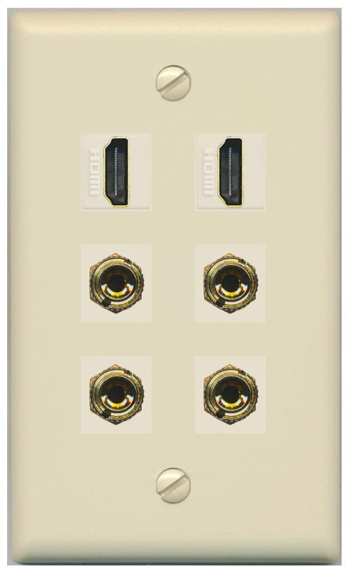 Increase quantity for RiteAV 2 Speaker 4 Banana Binding Post Wall Plate with 2 HDMI Jacks - Flat Style [Ivory/Ivory]