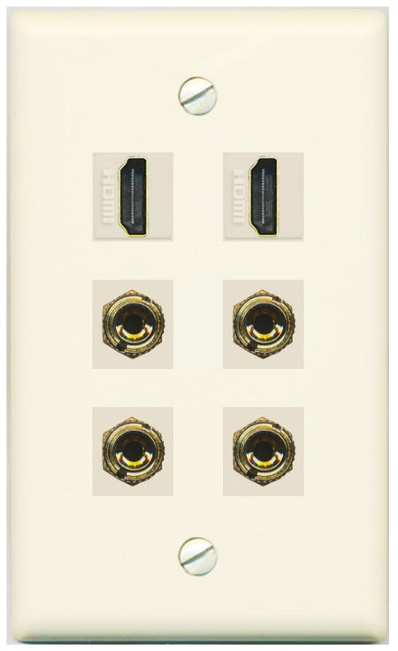 Increase quantity for RiteAV 2 Speaker 4 Banana Binding Post Wall Plate with 2 HDMI Jacks - Flat Style [Light-Almond]