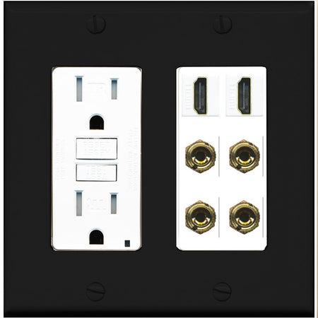 RiteAV 2 Speaker 4 Banana Binding Post Wall Plate with 2 HDMI Jacks - GFCI Outlet [Black/White]
