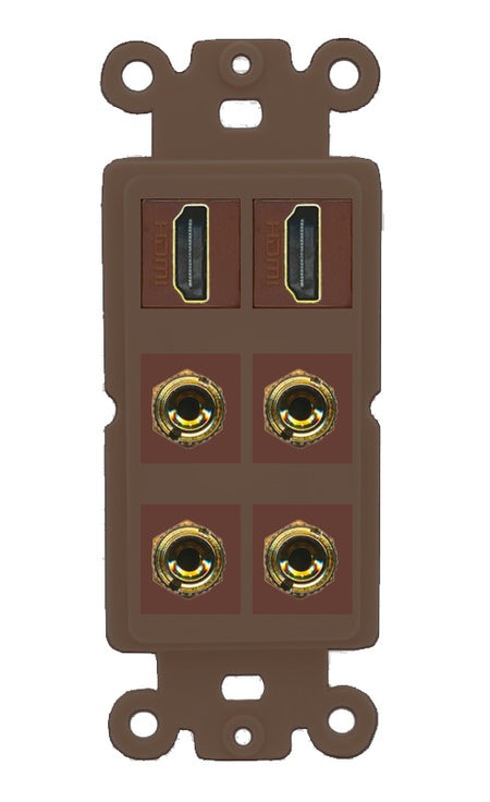 RiteAV 2 Speaker 4 Banana Binding Post Wall Plate with 2 HDMI Jacks - Rocker [Brown/Brown]