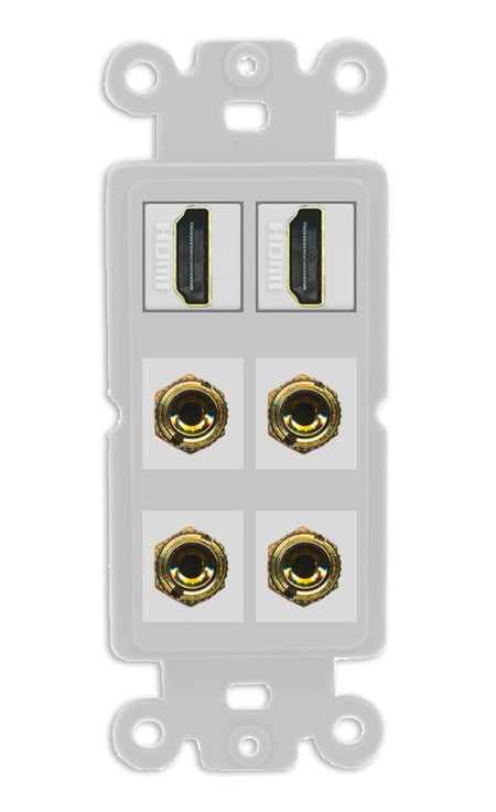 RiteAV 2 Speaker 4 Banana Binding Post Wall Plate with 2 HDMI Jacks - Rocker [Gray/Gray]
