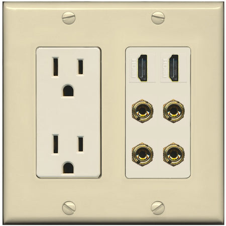 Increase quantity for RiteAV 2 Speaker 4 Banana Binding Post Wall Plate with 2 HDMI Jacks - Outlet [Ivory/Light-Almond]